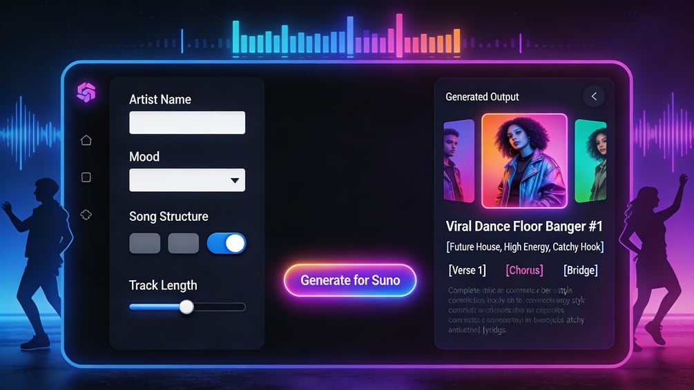 🎯 Producer's Pack Output — Every generation includes track design descriptions, style keywords, structure-aware lyrics, and viral hook breakdowns—ready to paste into Suno